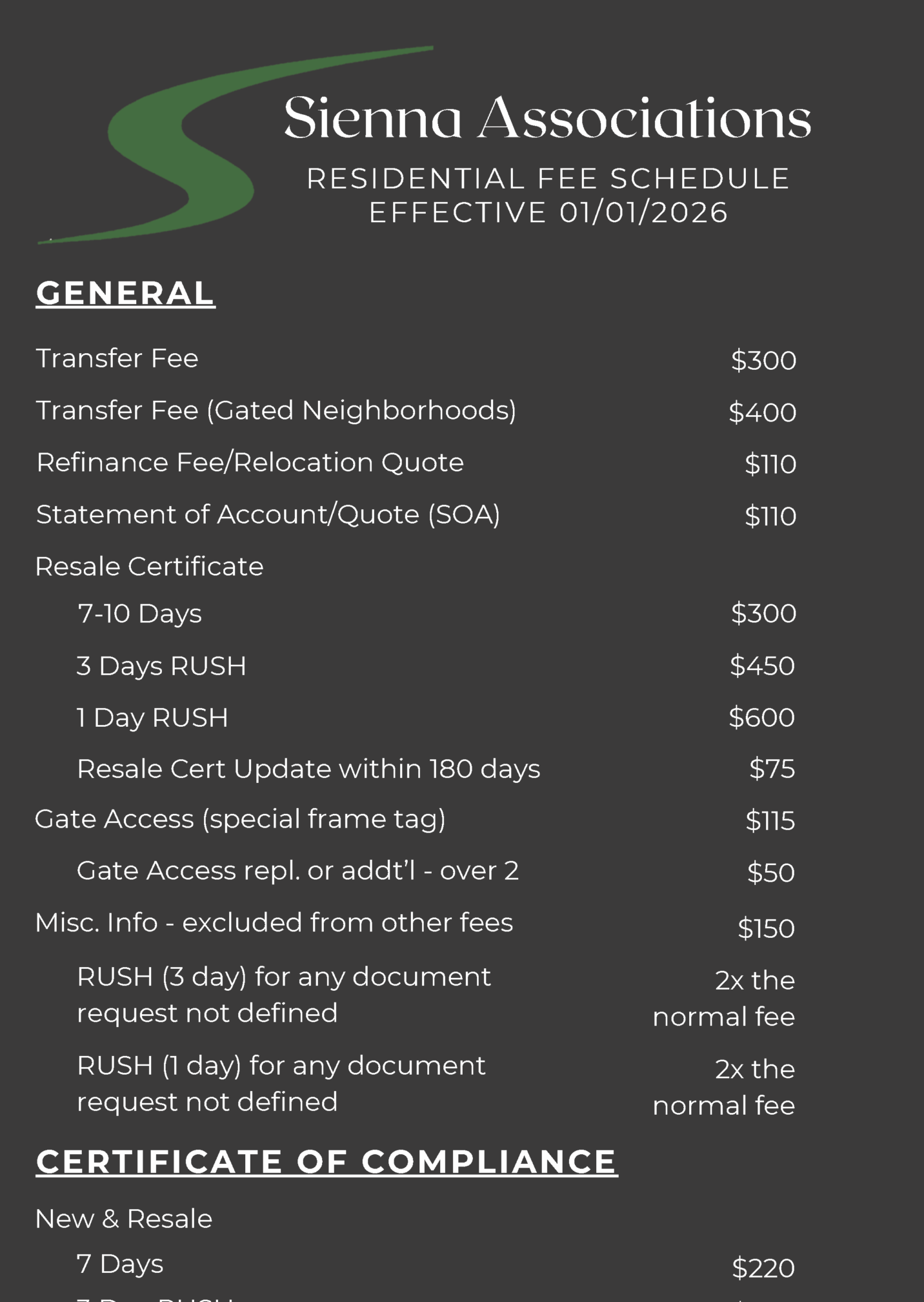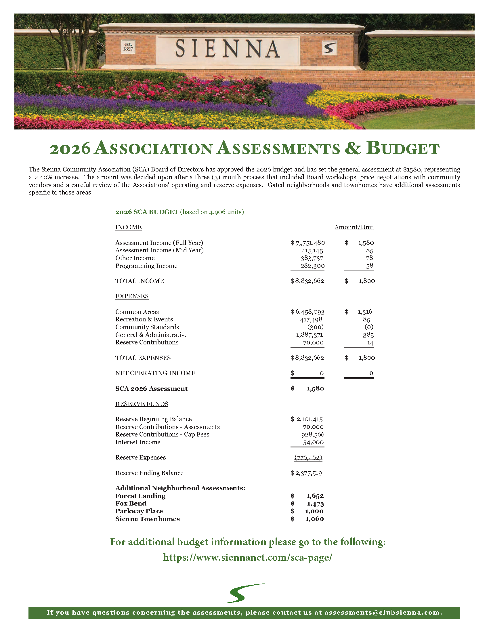 For Finance or Assessment related inquiries, email Assessments@clubsienna.com and/or Finance@clubsienna.com.